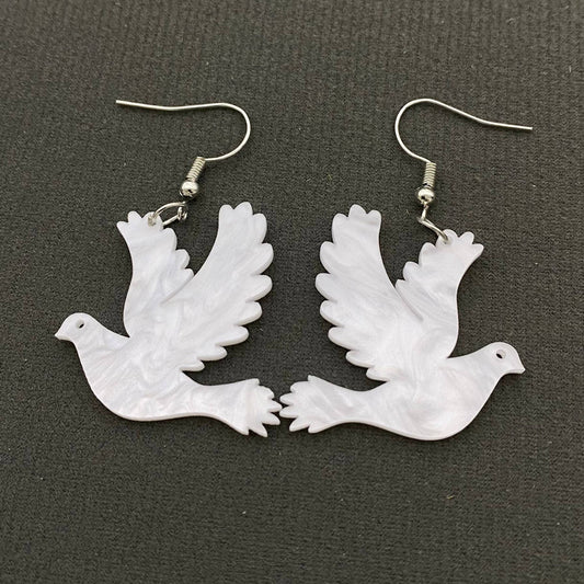 White Acrylic Dove Earrings