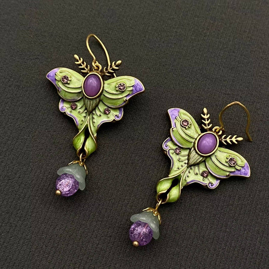 Vintage Green Enamel Moth Dangle Earrings