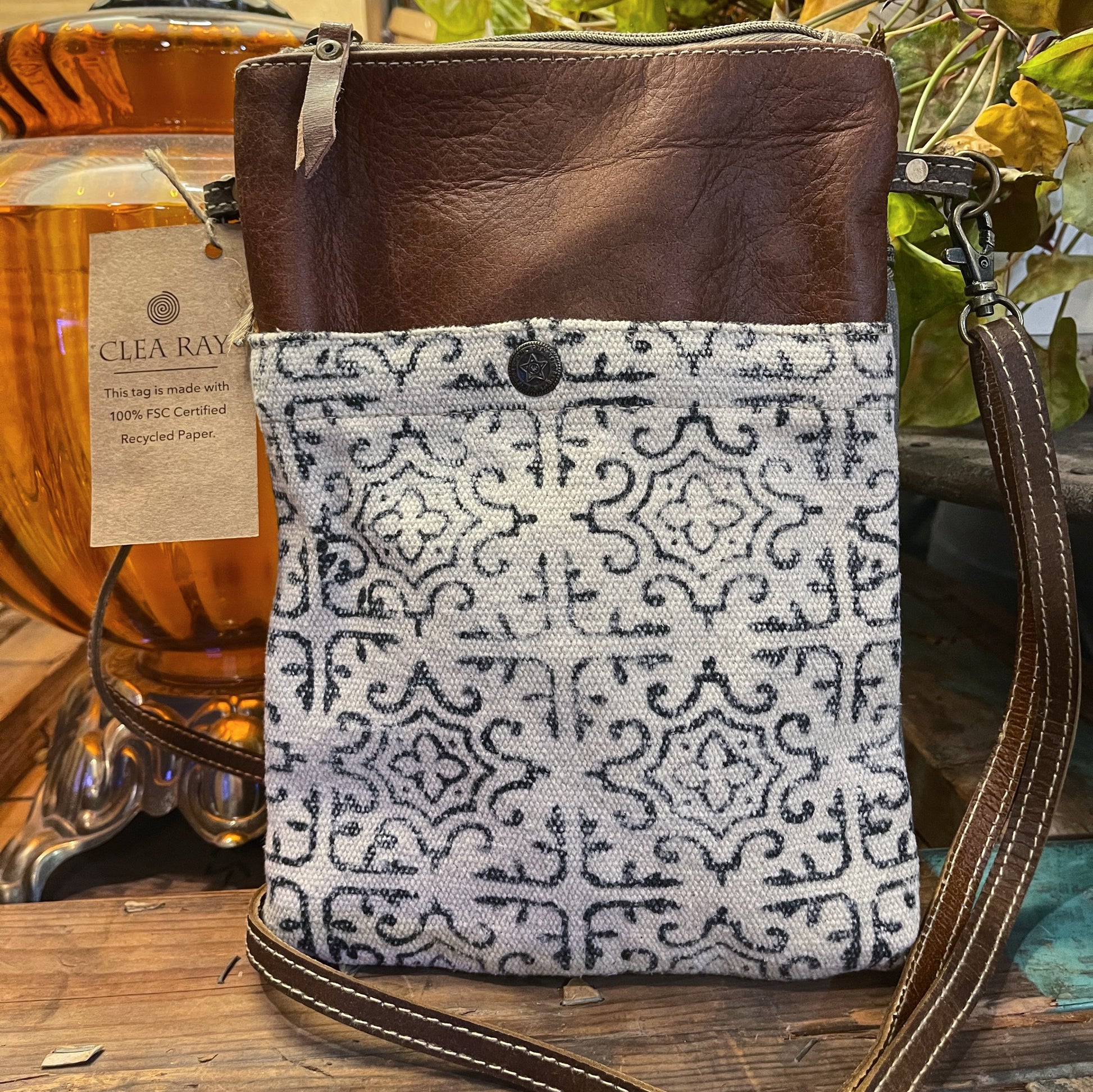B&W print w/ leather bag