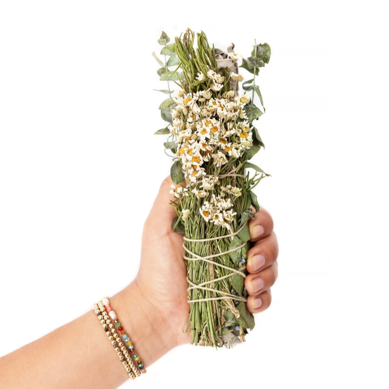 8" White Sage, Chamomile, Eucalyptus, and Rosemary, Floral Stick Sage Bundle | Spiritual, Energy, Smoke Cleanse | Smudge Bundle for Ceremony, Meditation, Altar, New Home Cleansing