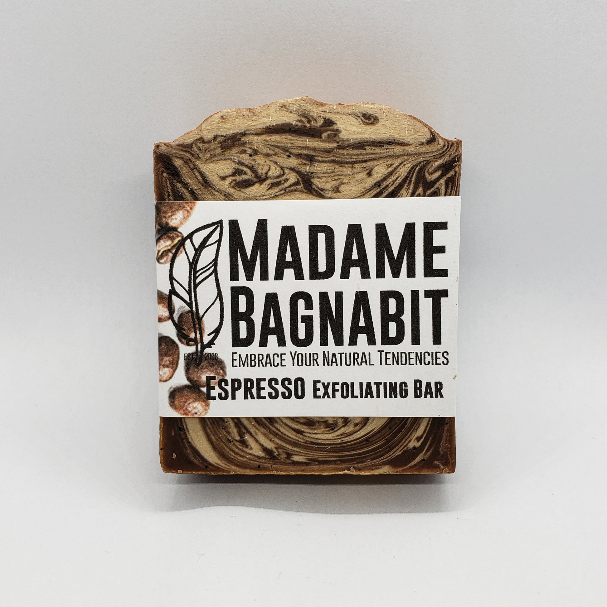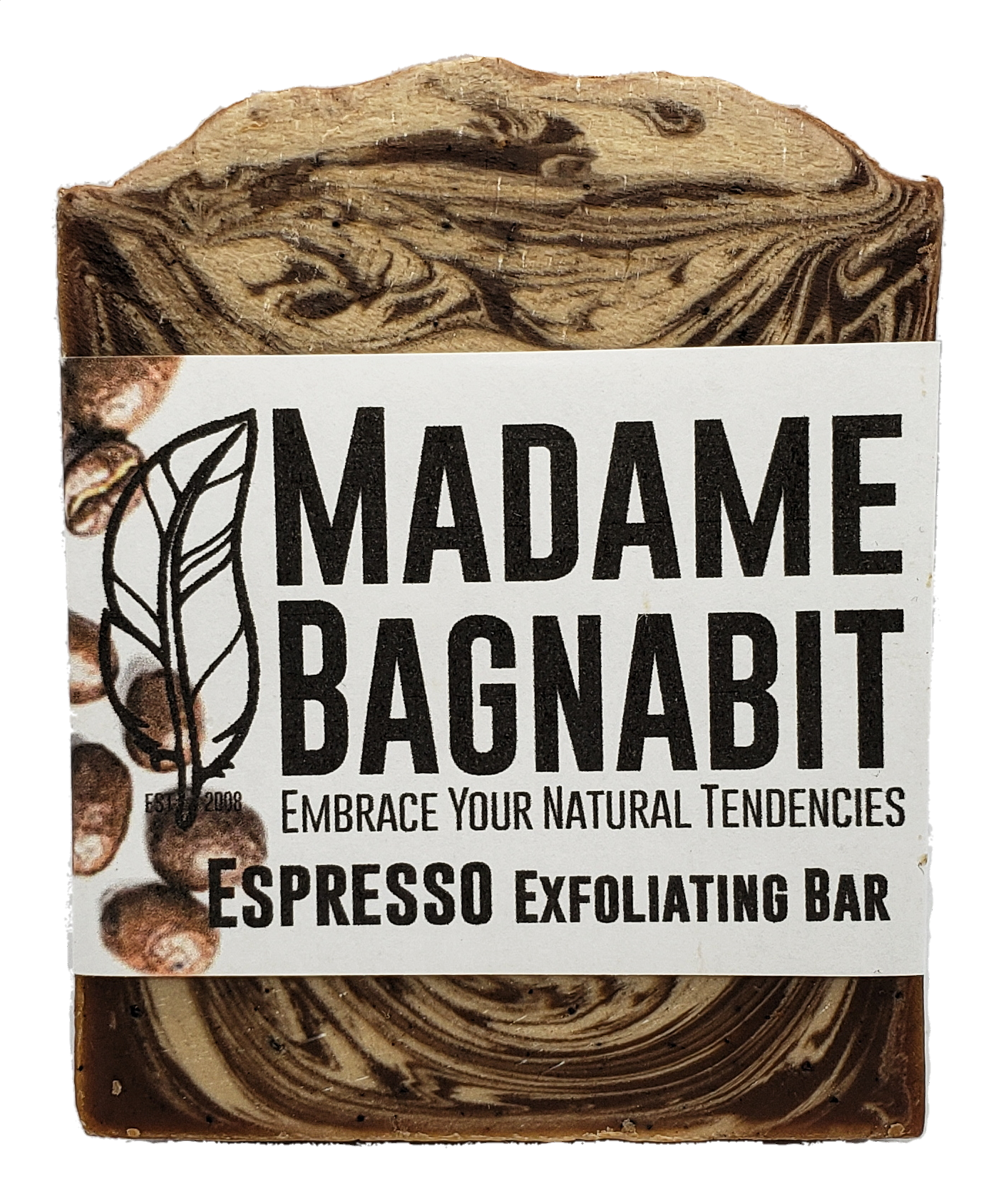 Ingredients: lard, coconut oil, reduced coffee, lye, castor oil, dark roast coffee FO, espresso FO, titanium dioxide, bentonite clay, coffee grounds, sodium lactate, molasses