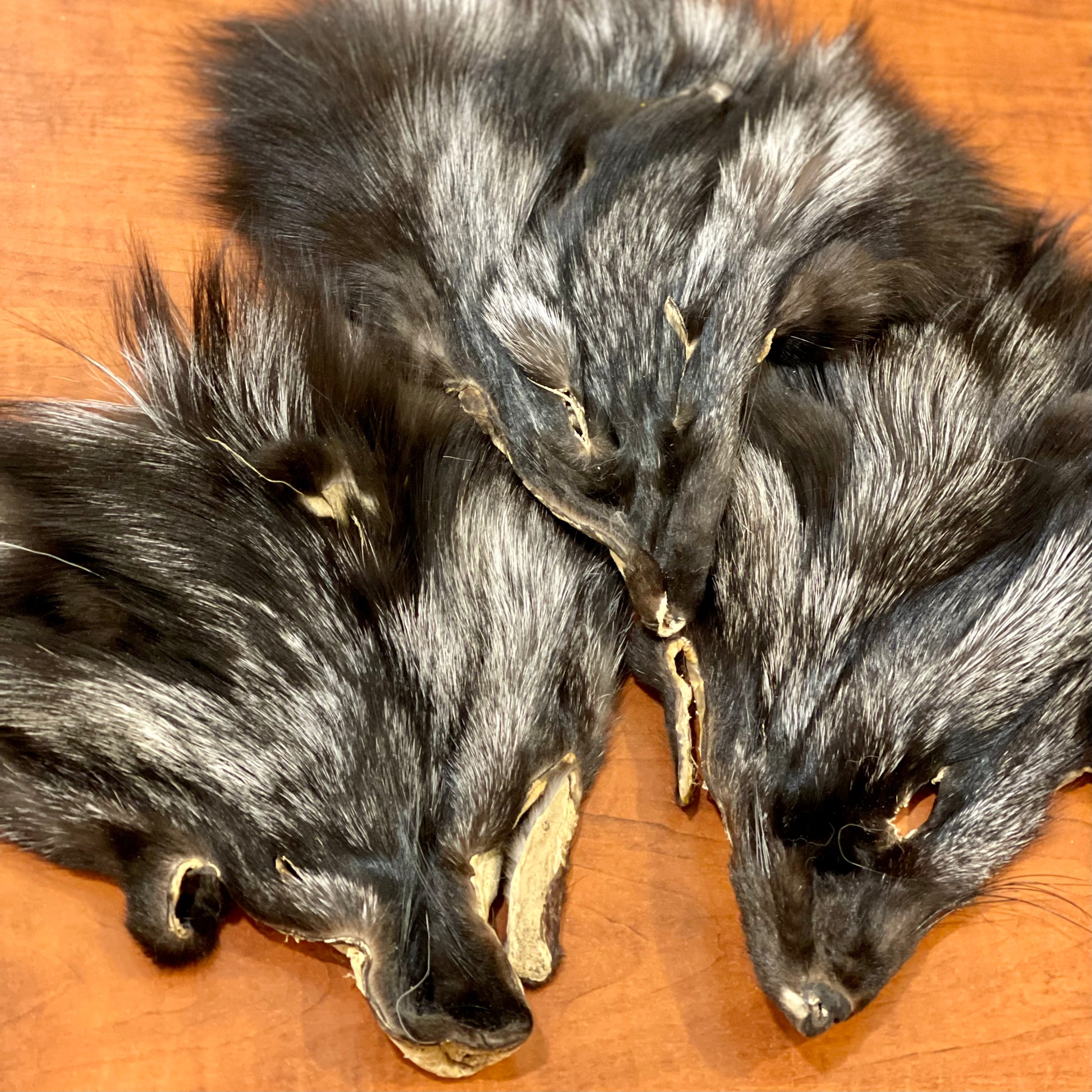 real Silver Fox face fur pelt. ethically sourced.