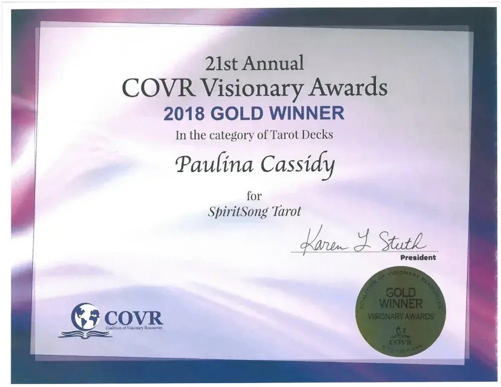 Spiritsong Tarot won second place for ATA Reader's Choice Award for Best Tarot Deck of 2017