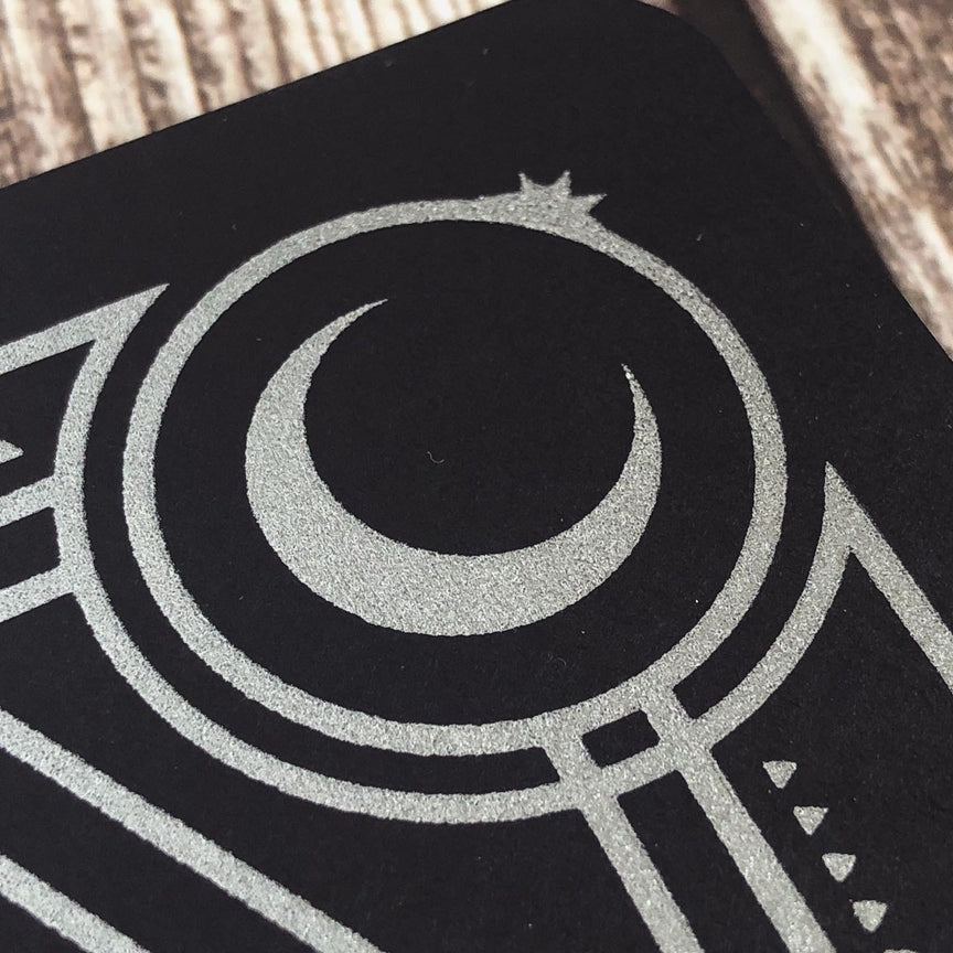 Hand-printed on a smooth and thick rich black paper with stunning silvery ink that give the cover a soft and sparkly appearance. The silky lined interior pages provide a smooth and consistent writing experience that works well with any writing instrument.